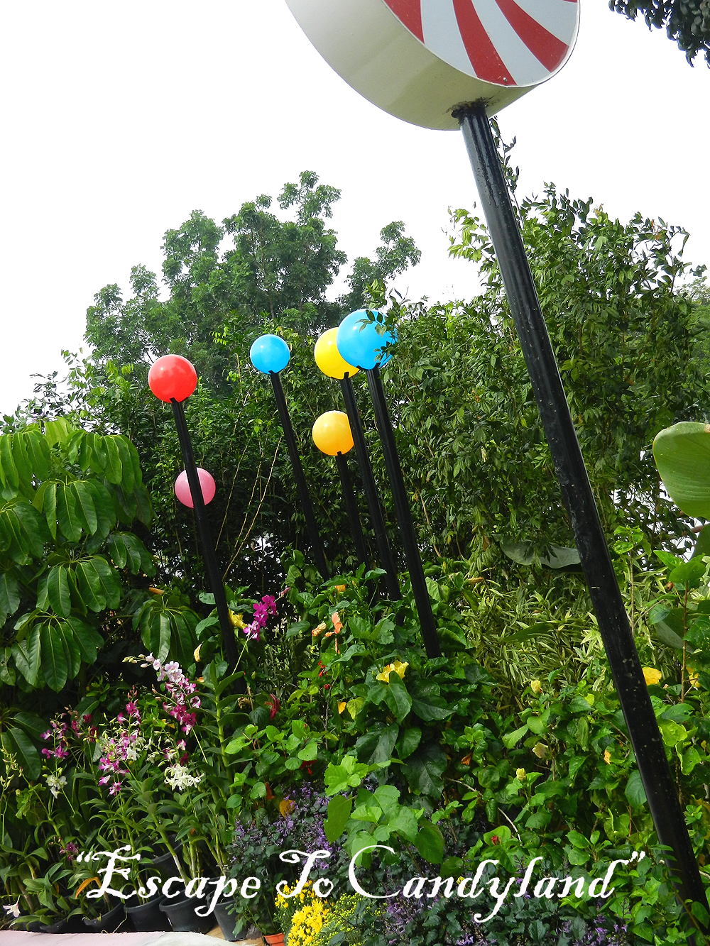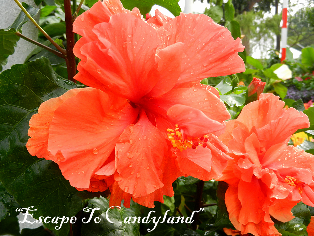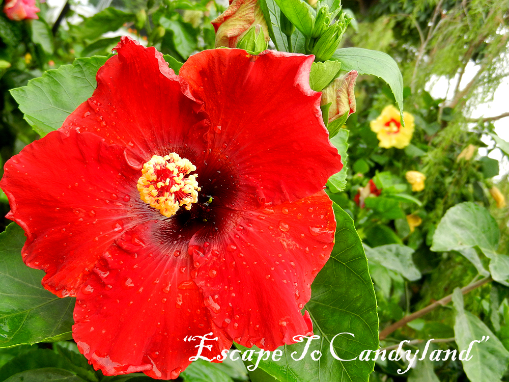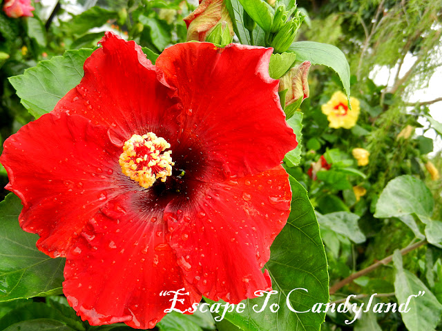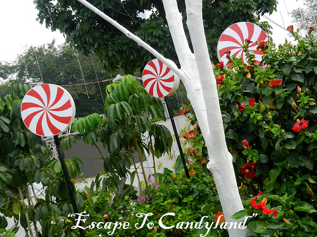 Now, feast your eyes on the colourful hues of Hibiscus blossoms, bright 'candy canes' and 'lollipops'; the giant white painted chair and the mystical tree trunk in the Hibiscus garden.....Enjoy your journey!