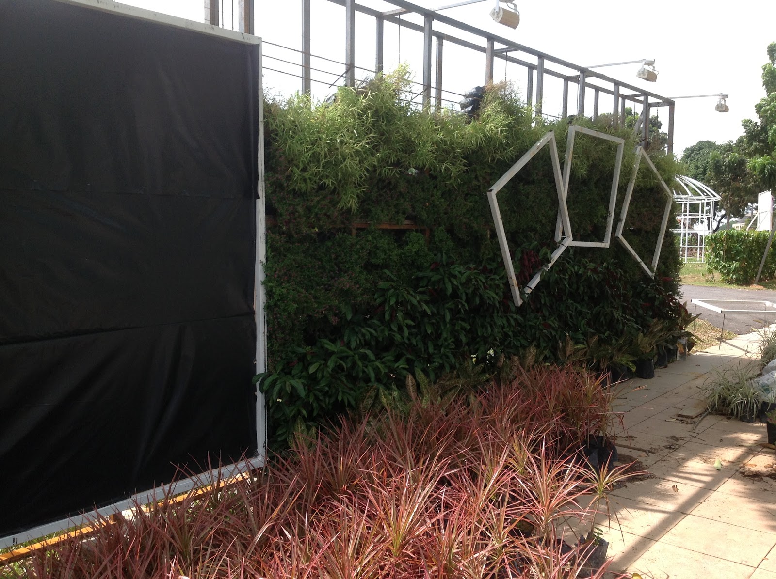 By designing a skillful arrangement of colorful plants, foliage, orchids, grass; and strategically placed hard materials makes this vertical wall a unique art piece at the FLORIA Putrajaya 2013 event.
